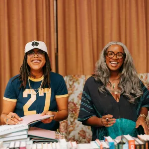 Featuring more than 300 stunning photographs of objects from the past, BLK MKT Vintage: Reclaiming Objects and Curiosities That Tell Black Stories (2024) is co-written by Jannah Handy ’08 and her partner in life and business, Kiyanna Stewart (pictured from left). For this nonfiction book, the authors drew inspiration from their work collecting items for their online store, BLK MKT Vintage. Ranging from vintage presidential election buttons to 1920s yearbooks from historically Black colleges and universities, the items that appear in the book represent the rich histories and lived experiences of Black individuals.