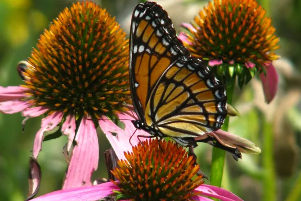 Viceroy butterfly on coneflower. Photograph by Desirée Narango