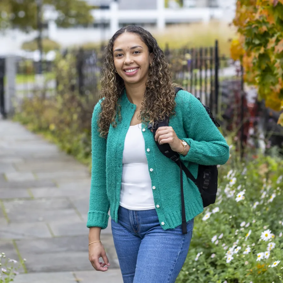 Selam Maher ’26 in Capen Garden. Photo by Lynne Graves