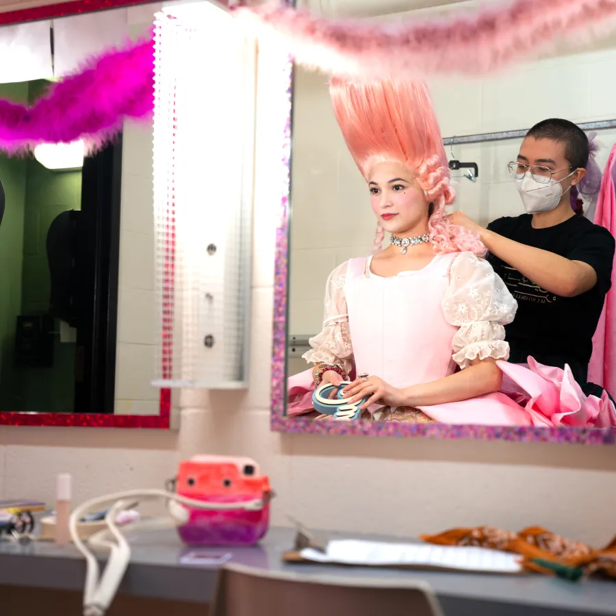 When thinking back to what the reception of the Department of Theatre’s production of Marie Antoinette would be like on its opening night, costume designer Rex Tans ’25 posed a question: “Who can resist the combined allure of grandeur, visual frivolity, and drama?”