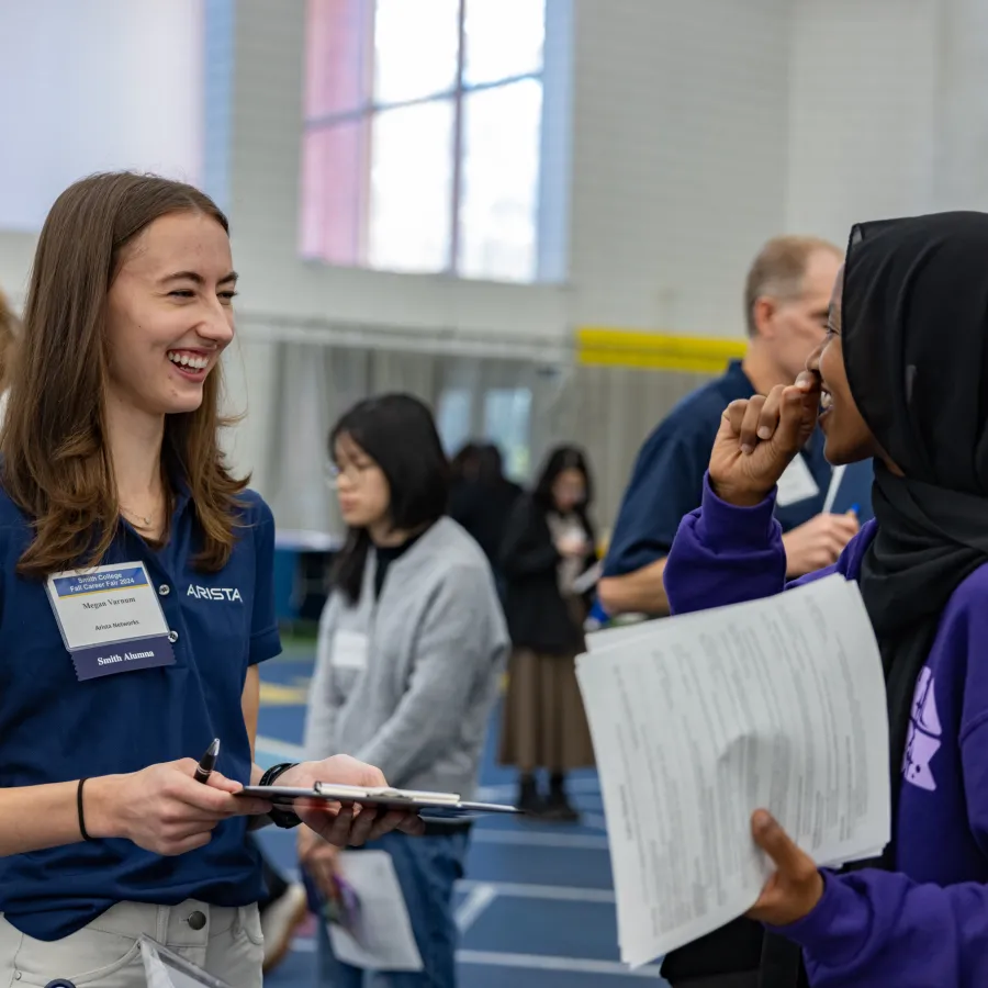 FM: “AI is dramatically shifting the job search process and the application process. Students need tools for how to navigate that effectively and ethically. A central message that we are trying to convey is that in this rapidly shifting economy, networking is more important than ever. Getting students to use our Smith Career Connect platform to engage with the thousands of alums who have volunteered to help is a critical place to start.”