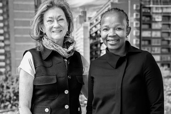 Jane Dawson Shang ’82, left, and Tandiwe Njobe ’94 were photographed at Constitution Hill, a national heritage site in Johannesburg, South Africa. Photograph by Lexie Knight