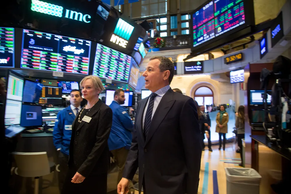 McCarthy and then-Disney CEO Bob Iger tour the floor of the New York Stock Exchange in 2017.