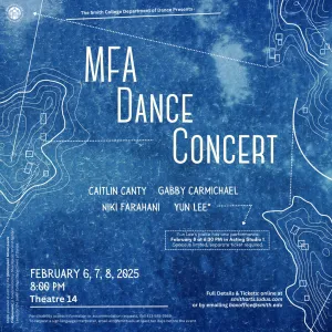 Every semester at Smith features mainstage and studio theatre performances, faculty and student dance performances, new play readings, new works of choreography by grad dance students, and a large assortment of faculty and student music performances, including a series of informal concerts at lunchtime.